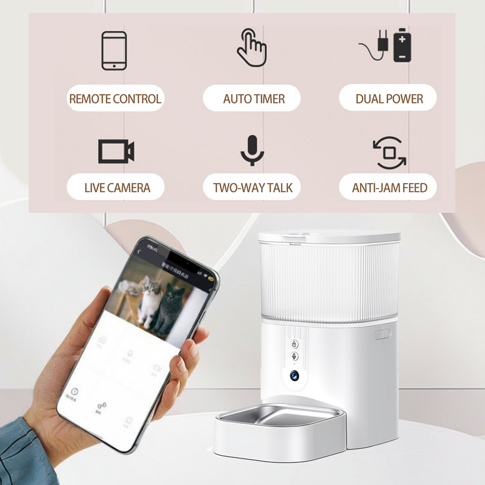 | Functions | Timed Feeding, Remote Feeding, Live Video, Two-Way Audio, Anti-Clog Design, Dual Power, Offline Mode |