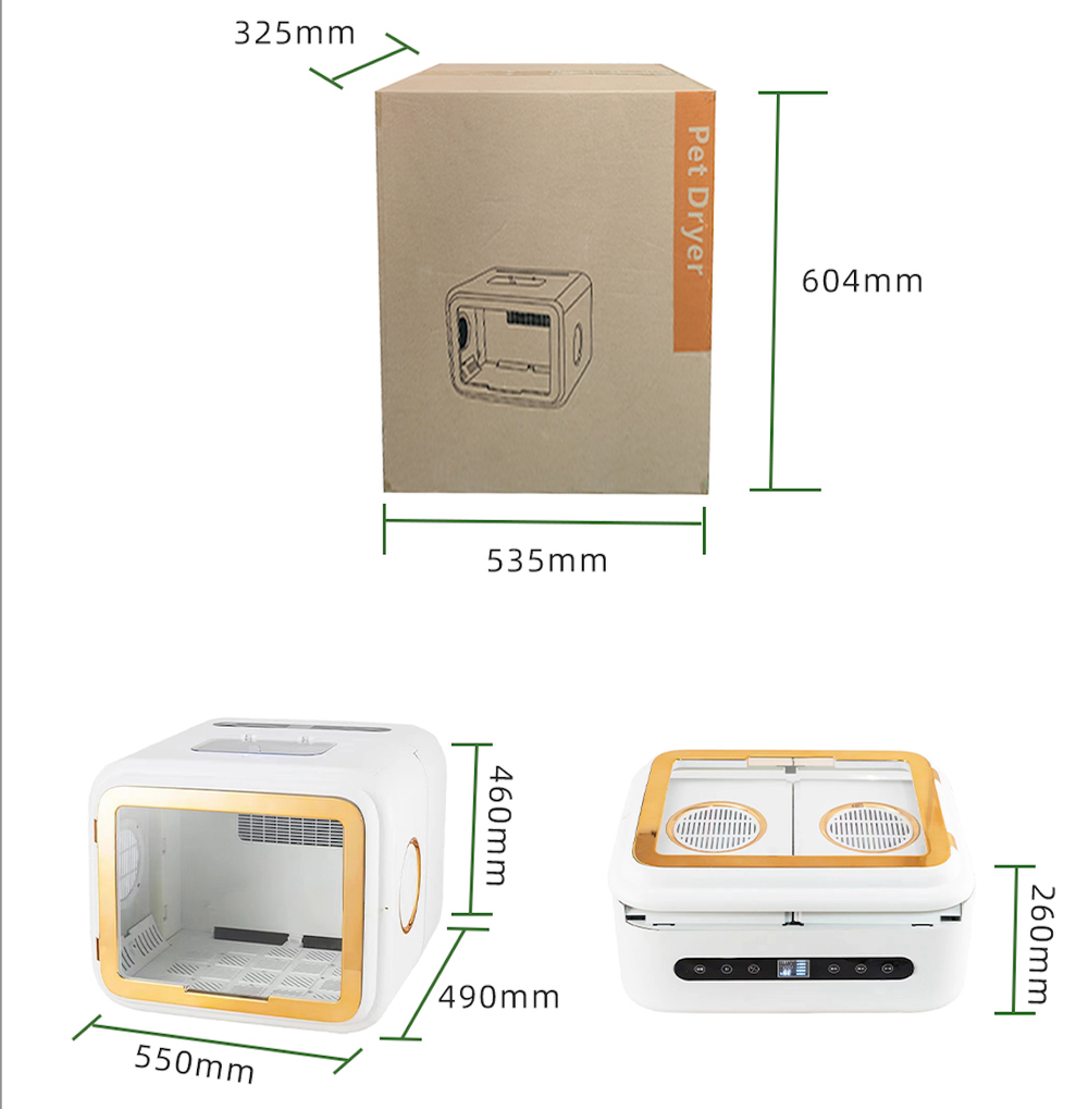 With a large 68L drying chamber, your pet can sit, stand, or lie down freely.